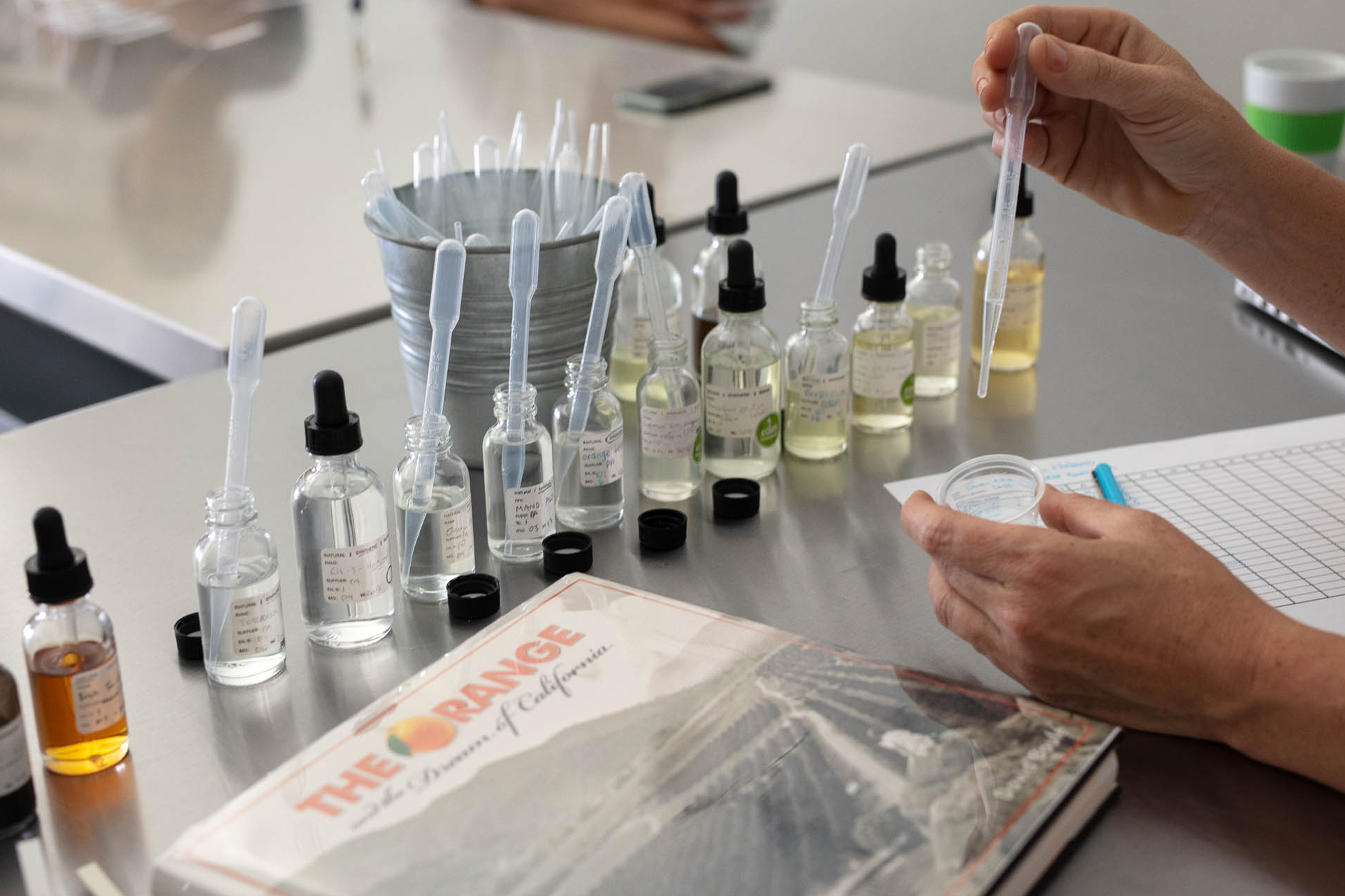 Our exploration focused on five eras in the evolution of the project site and surrounding area, beginning with the native lands prior to 1781 and ending in the current site use today. Through our workshops, we created custom scents that represent both the natural and man made elements that define each time period, invoking everything from tangy citrus groves to human toil, from train engine soot to fresh fruits and vegetables, from soap to sagebrush.